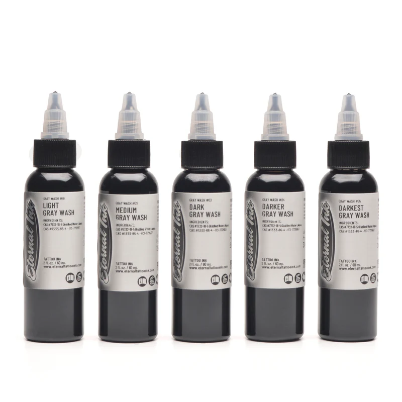 مجموعه رنگ کلاسیک گری واش از برند اترنال یک ست حرفهای و منحصر به فرد از رنگهای خاکستری است که به طور خاص برای تاتو طراحی شده است. این مجموعه شامل پنج رنگ با درجات مختلف خاکستری است که به هنرمندان تاتو امکان میدهد تا سایهزنی و عمق مطلوب را در طراحیهای خود ایجاد کنند.