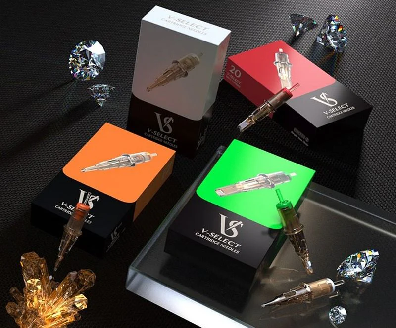 – طراحی ارگونومیک دسته: کارتریجهای V-Select دارای دسته ارگونومیک هستند که باعث میشود انتقال سریع و ایمن بین کارتریجها صورت گیرد. این طراحی باعث راحتی بیشتر در حین کار میشود و از خستگی دستها جلوگیری میکند، که برای هنرمندان تاتو ضروری است.
